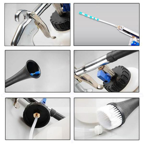 Tento vysokotlakový čistič umožňuje rýchle a efektívne čistenie interiéru a exteriéru vozidla. Jeho kužeľová tryska v kombinácii s rotačnou akciou cielené na zabudnutú špinu. Kompatibilný so všetkými vzduchovými kompresormi, ľahko dosiahne ťažko prístupné miesta.